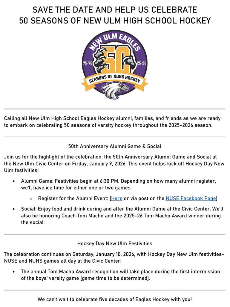 Thank you for helping to lay the groundwork for New Ulm Hockey!