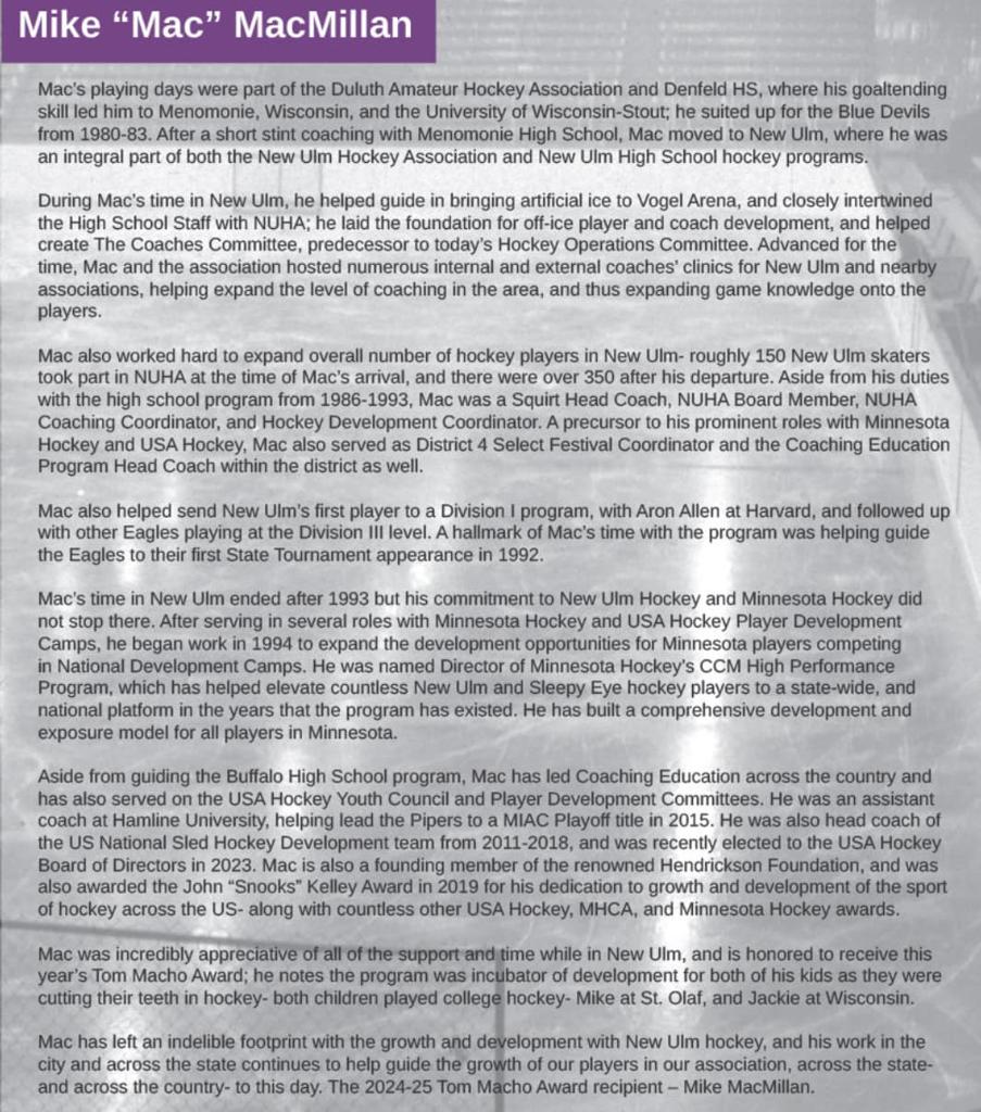 Congratulations to the 2024-2025 Tom Macho Award winner, Mike "Mac" MacMillan!